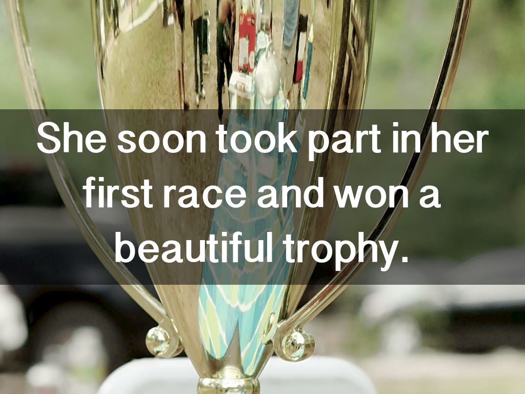 She soon took part in her first race and won a beautiful trophy.