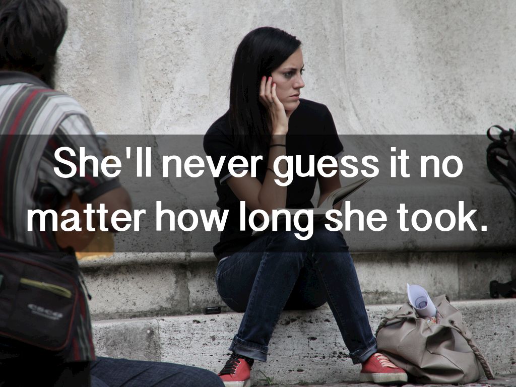 She'll never guess it no matter how long she took.