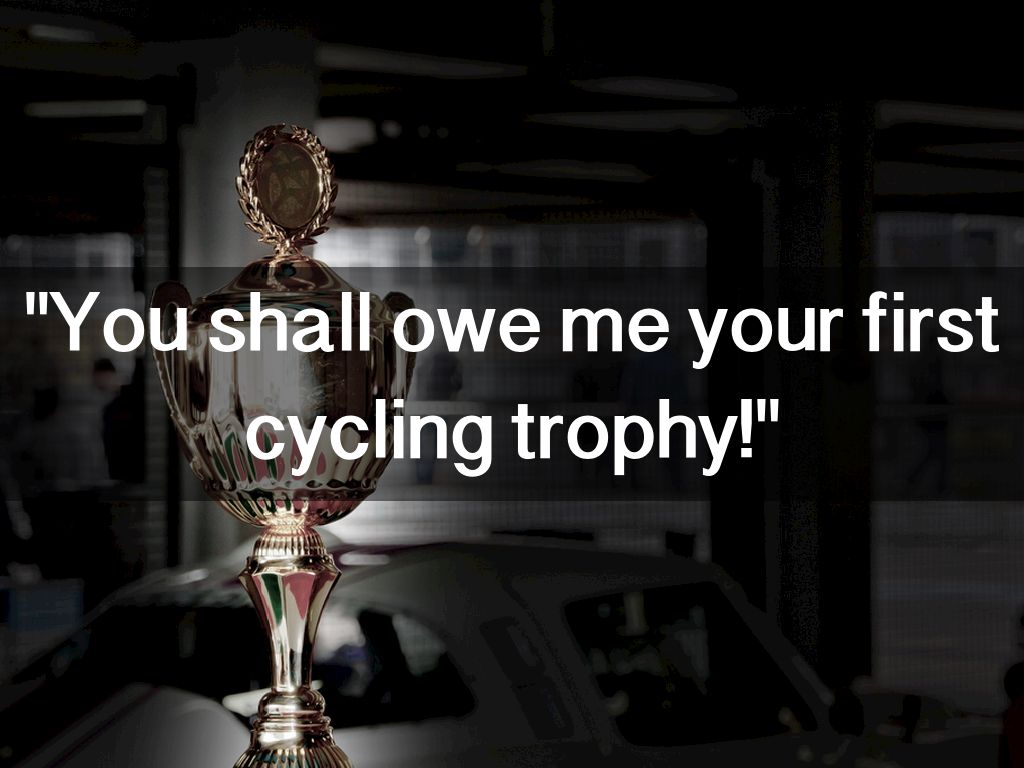"You shall owe me your first cycling trophy!"