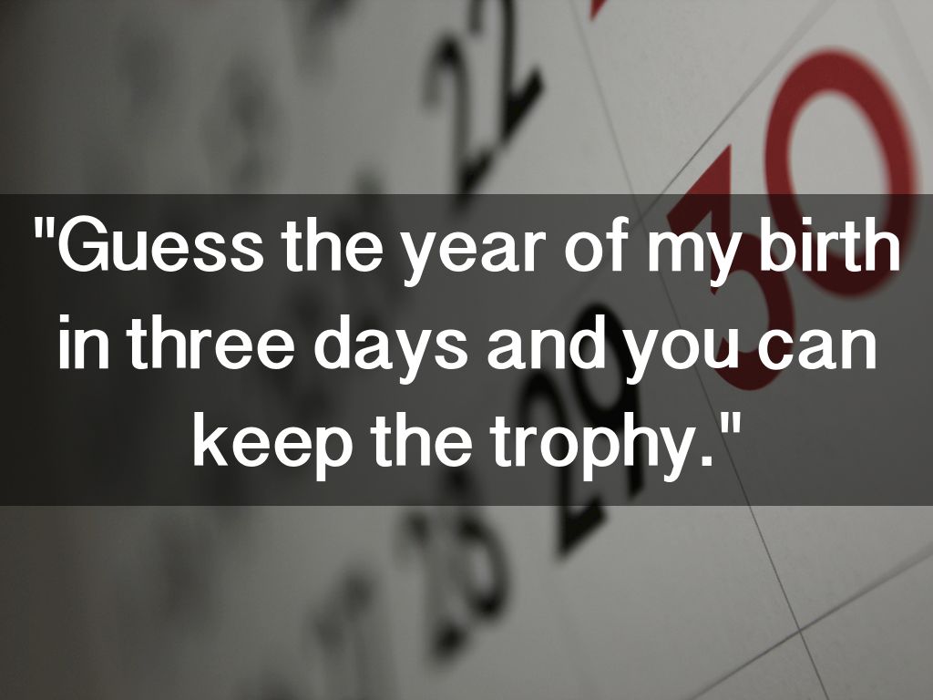 "Guess the year of my birth in three days and you can keep the trophy."