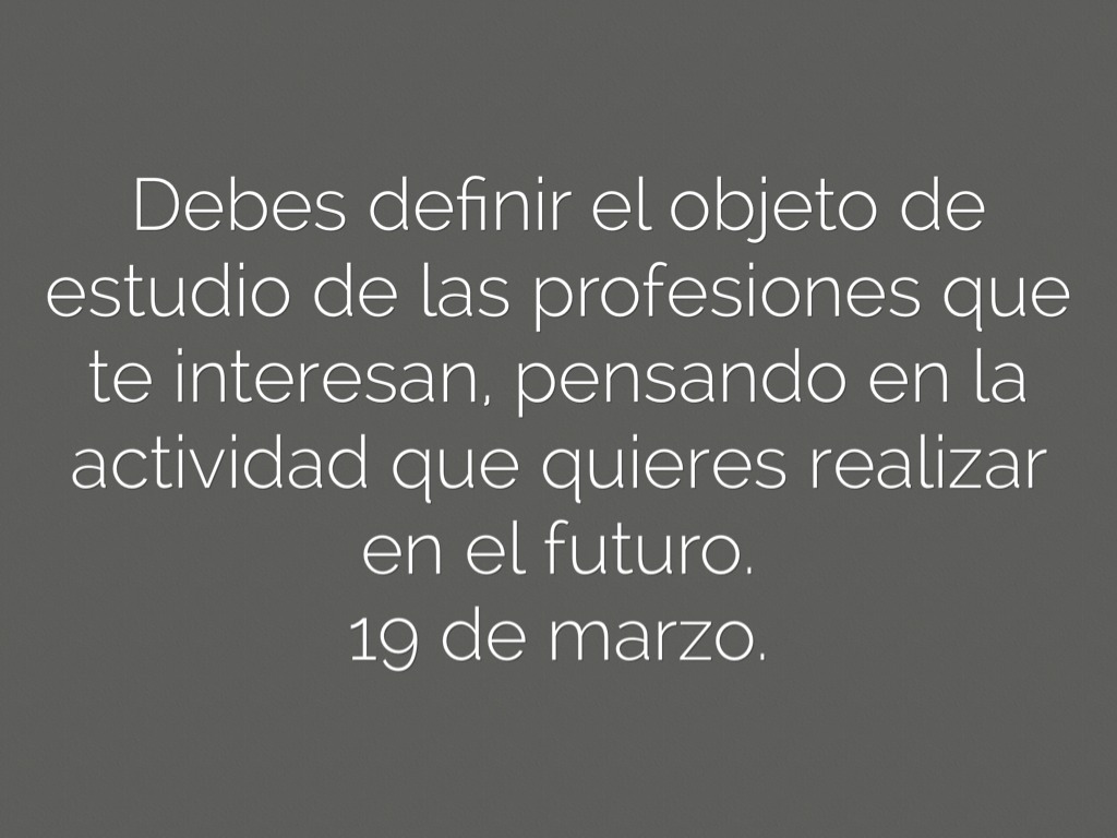 Debes definir el objeto de estudio de las profesiones que te interesan, pensando en la actividad que quieres realizar en el futuro.
