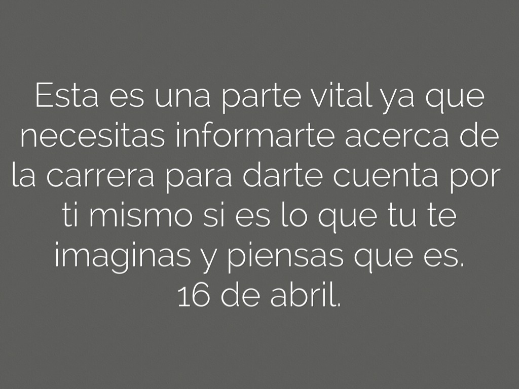 Esta es una parte vital ya que necesitas informarte acerca de la carrera para darte cuenta por ti mismo si es lo que tu te imaginas y piensas que es.