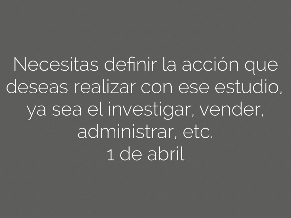 Necesitas definir la acción que deseas realizar con ese estudio, ya sea el investigar, vender, administrar, etc.