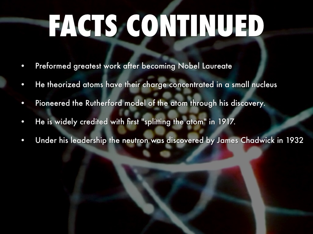 Under his leadership the neutron was discovered by James Chadwick in 1932