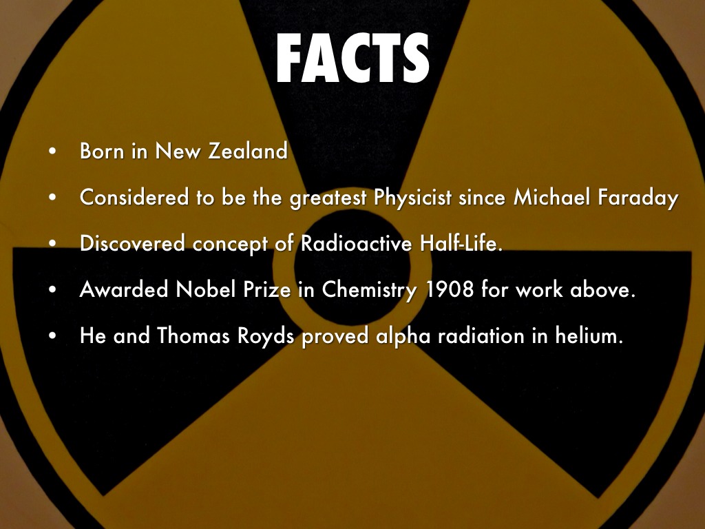 Awarded Nobel Prize in Chemistry 1908 for work above.