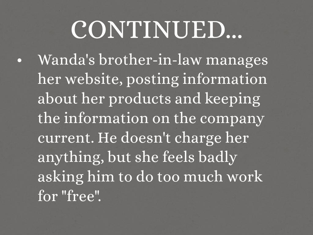 Wanda's brother-in-law manages her website, posting information about her products and keeping the information on the company current. He doesn't charge her anything, but she feels badly asking him to do too much work for "free".