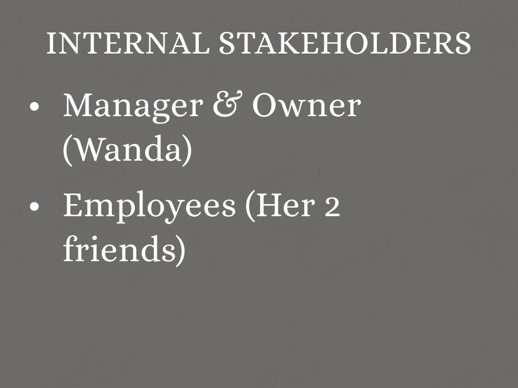 Wanda spends most answering emails and inquires through Etsy and her website while her friends bake and package the treats. She is working 15 hours a day, 7 days a week and knows she can't keep this pace up much longer. She is very reluctant to change how she is doing business because she doesn't want to give up on the success she has built.
