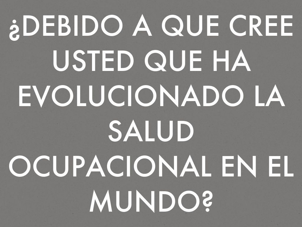 ¿DEBIDO A QUE CREE USTED QUE HA EVOLUCIONADO LA SALUD OCUPACIONAL EN EL MUNDO?