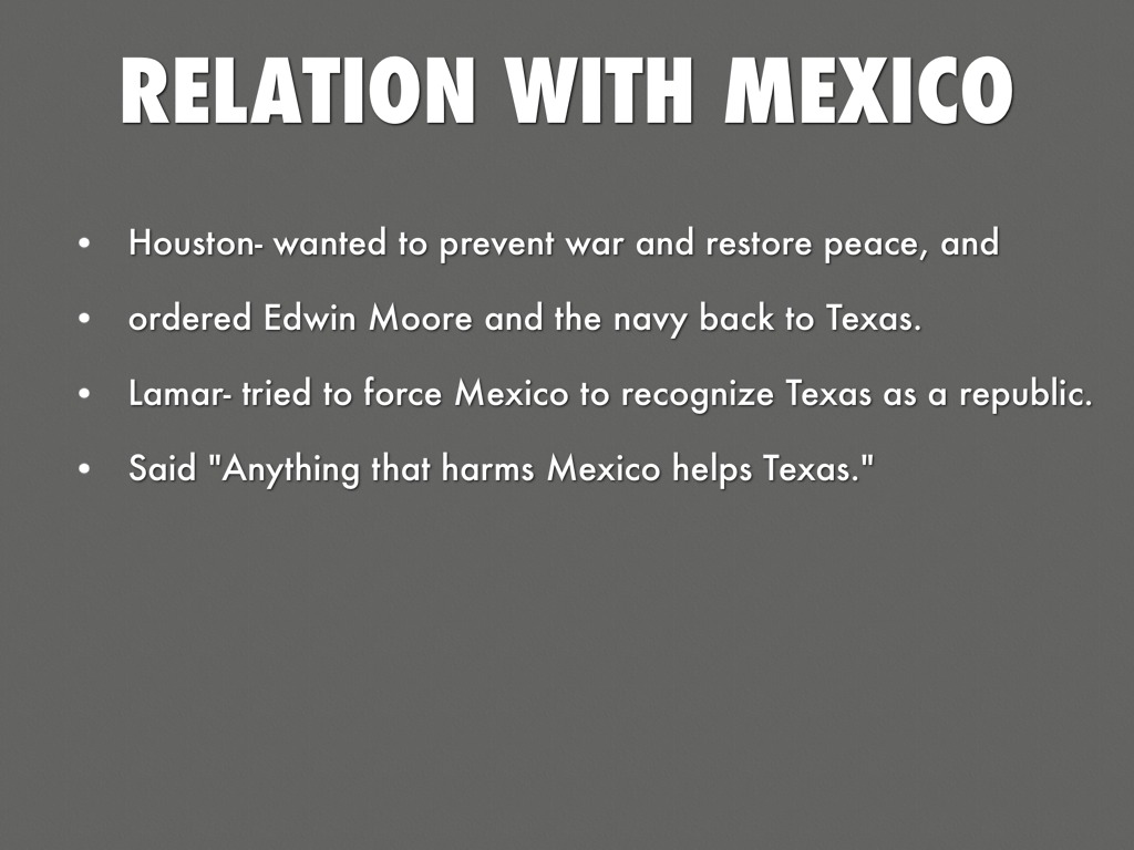 Lamar- tried to force Mexico to recognize Texas as a republic.