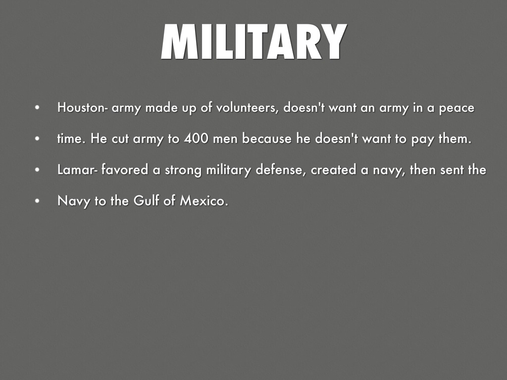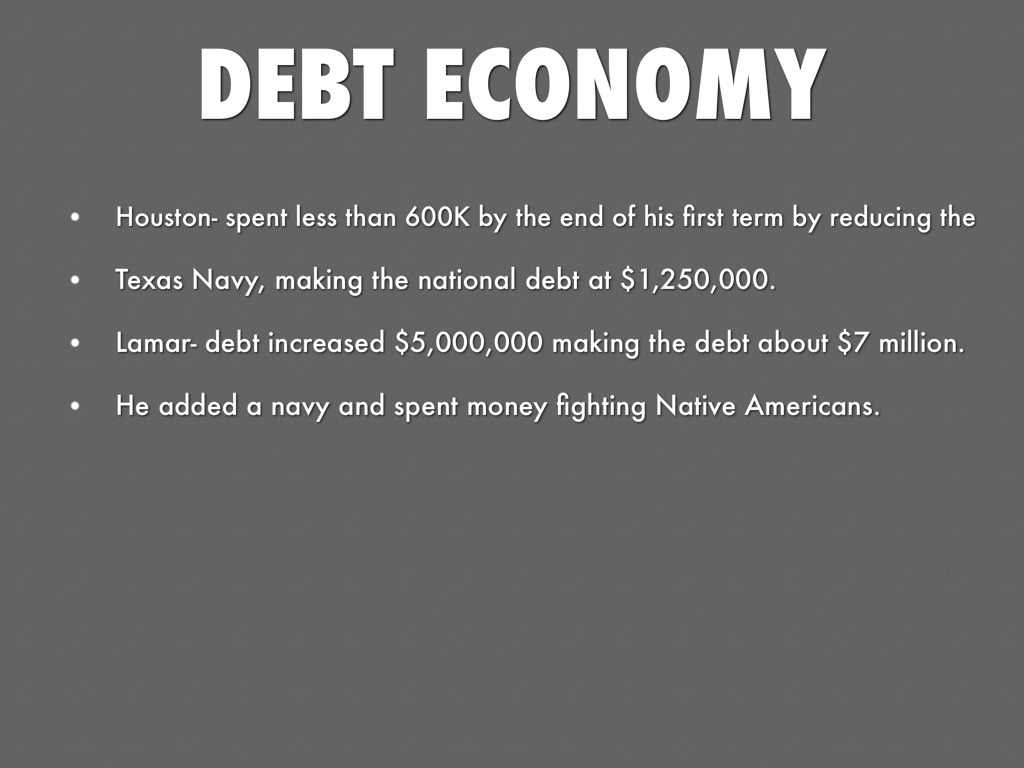 Lamar- wanted to rid Texas of Indians because he thought there was