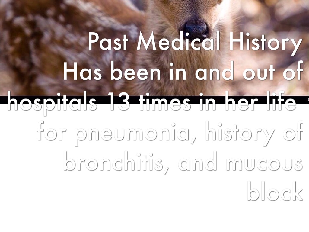 Allergies & Medications Food allergies : watermelon, corn, strawberries, kiwi, dust, cats and tomatoes Medication allergies: Benadryl, aspirin, and morphine Medications: Theophylline 100mg every 12 hours Ventolin inhaler as needed Duo neb breathing treatments every 4 - 6 hours as needed through if flare ups Pratropium bromide mixed with albuterol solution Advair2 times a day Multivimin and iron tablets