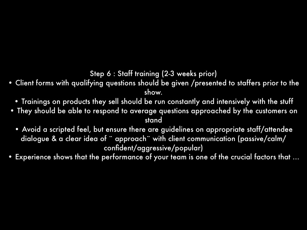• Client forms with qualifying questions should be given /presented to staffers prior to the show.