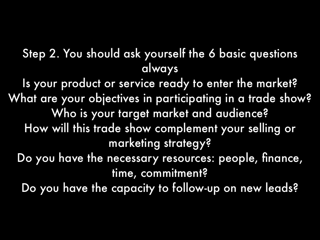 • Make sure you have a clear objective on participation & set up the right marketing goals that will help you fulfill your business strategy