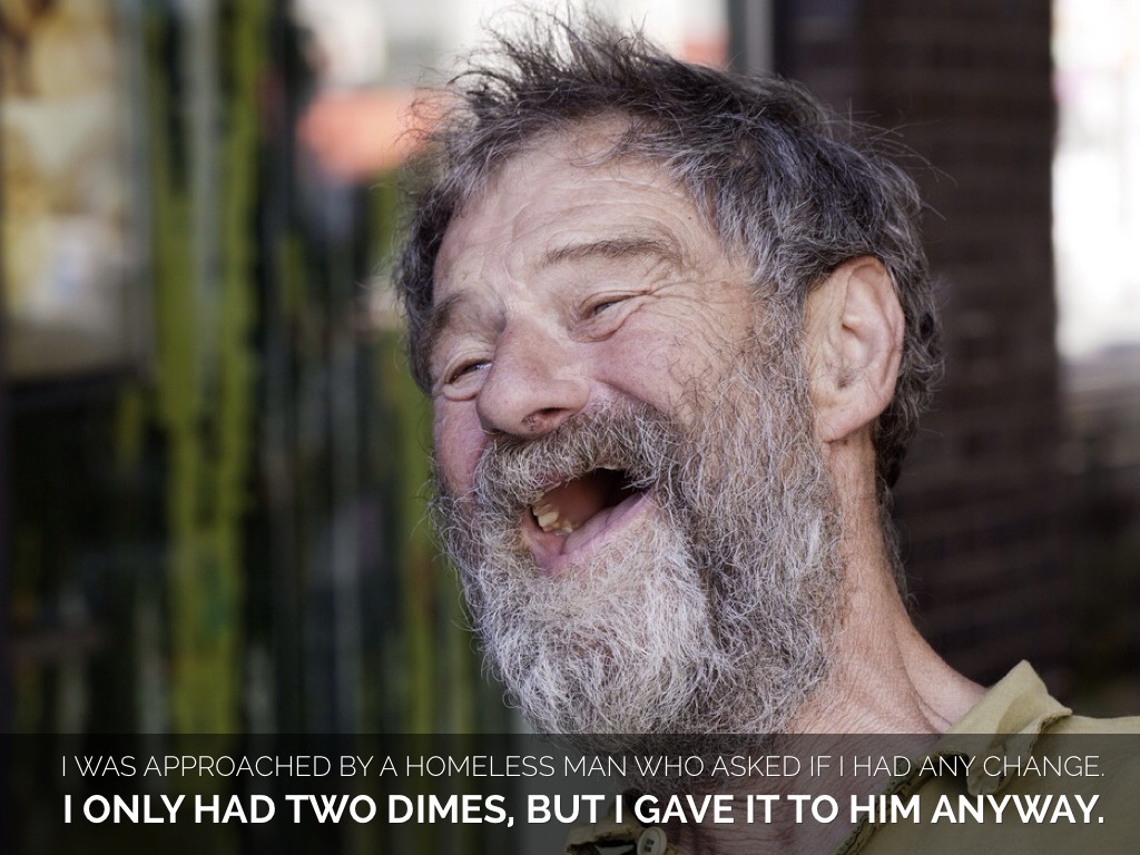 I ONLY HAD TWO DIMES, BUT I GAVE IT TO HIM ANYWAY.