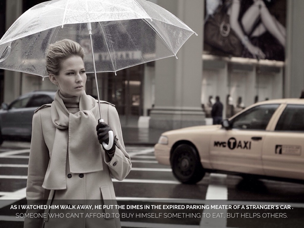 AS I WATCHED HIM WALK AWAY, HE PUT THE DIMES IN THE EXPIRED PARKING MEATER OF A STRANGER'S CAR .
