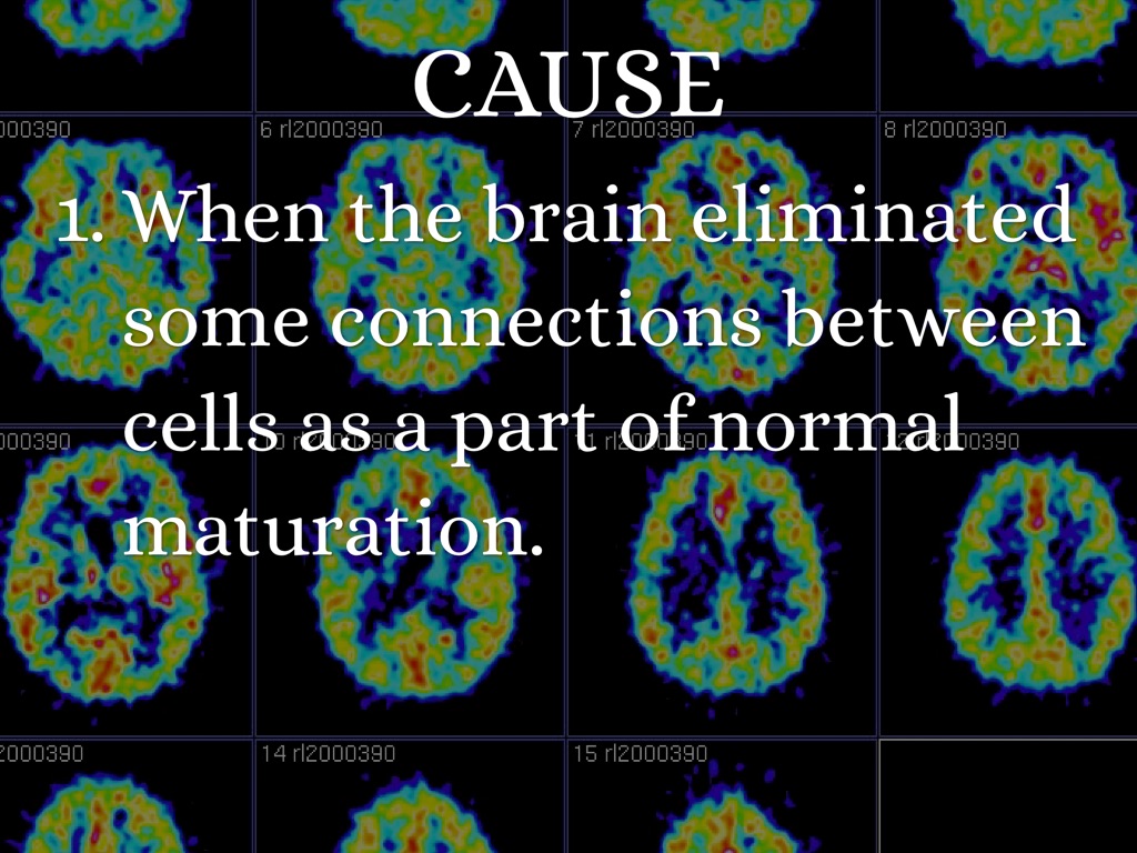 When the brain eliminated some connections between cells as a part of normal maturation.