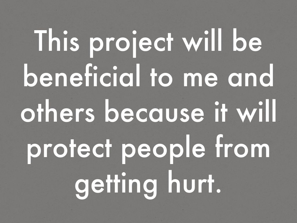 This project will be beneficial to me and others because it will protect people from getting hurt.