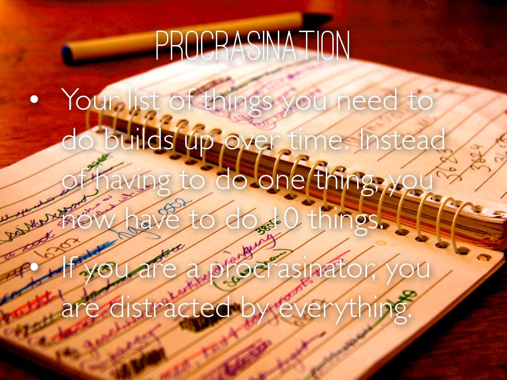 Your list of things you need to do builds up over time. Instead of having to do one thing, you now have to do 10 things.