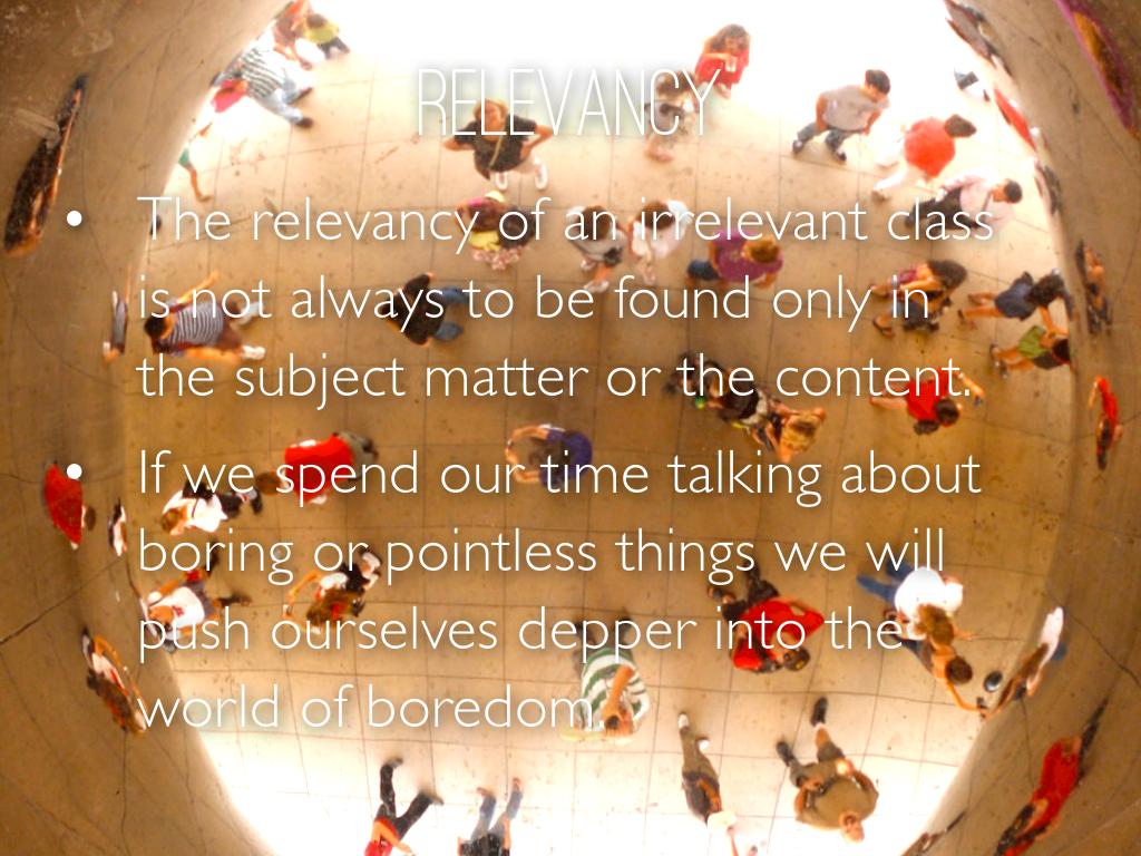 The relevancy of an irrelevant class is not always to be found only in the subject matter or the content.