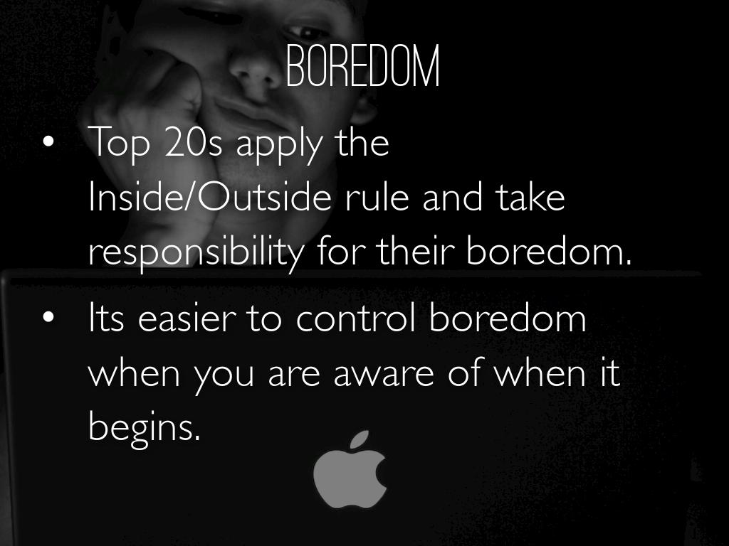 Top 20s apply the Inside/Outside rule and take responsibility for their boredom.