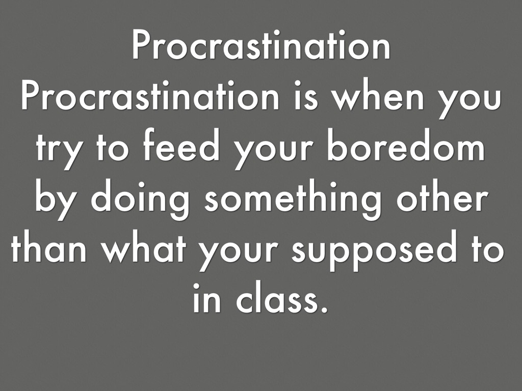 Procrastination is when you try to feed your boredom by doing something other than what your supposed to in class.