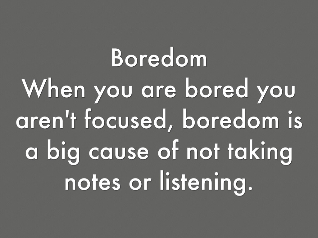 When you are bored you aren't focused, boredom is a big cause of not taking notes or listening.