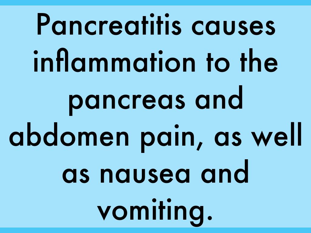 Pancreatitis causes inflammation to the pancreas and abdomen pain, as well as nausea and vomiting.