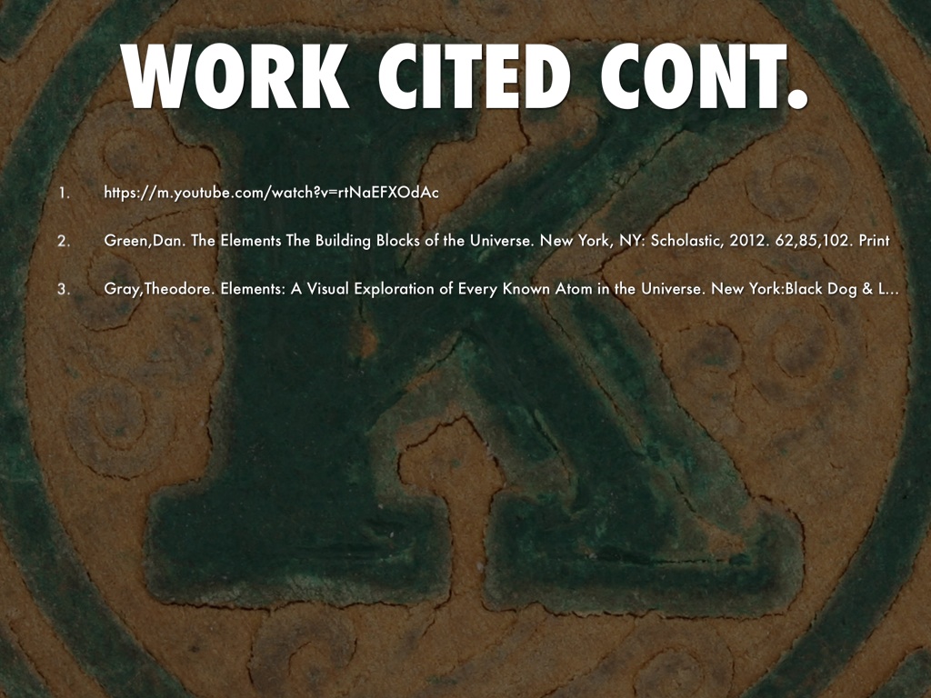 Gray,Theodore. Elements: A Visual Exploration of Every Known Atom in the Universe. New York:Black Dog & Leventhal, 2009.52-53. Print.