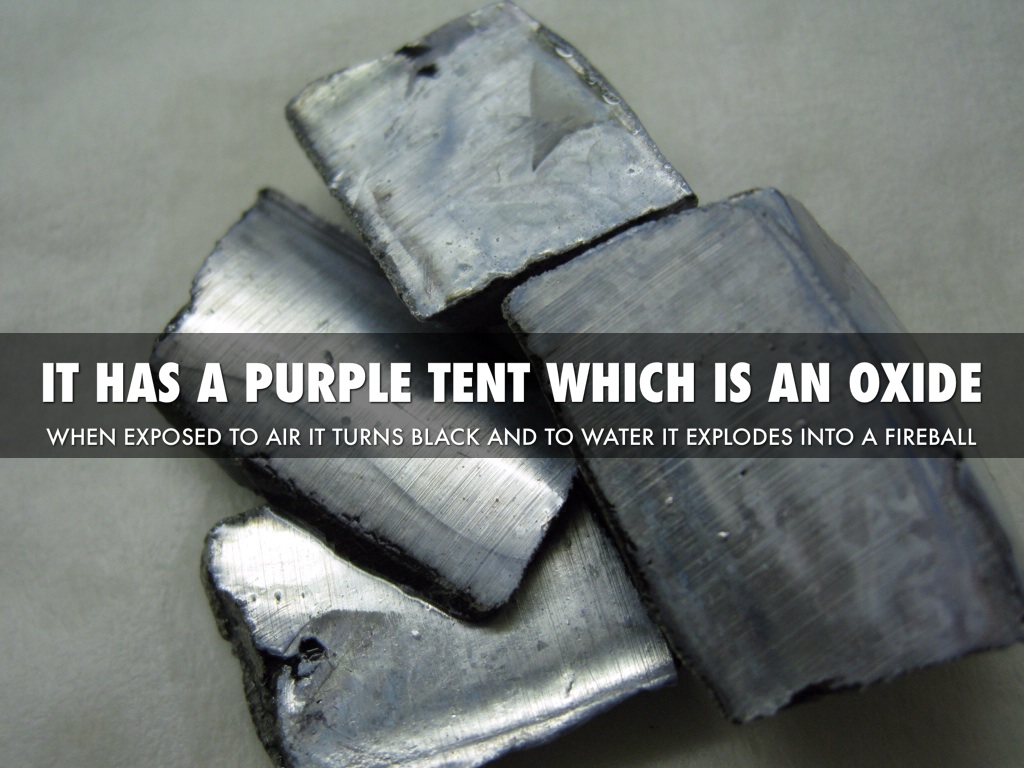 WHEN EXPOSED TO AIR IT TURNS BLACK AND TO WATER IT EXPLODES INTO A FIREBALL
