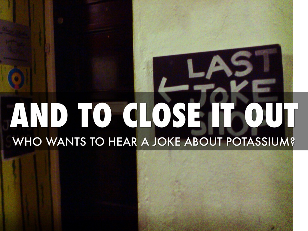 WHO WANTS TO HEAR A JOKE ABOUT POTASSIUM?