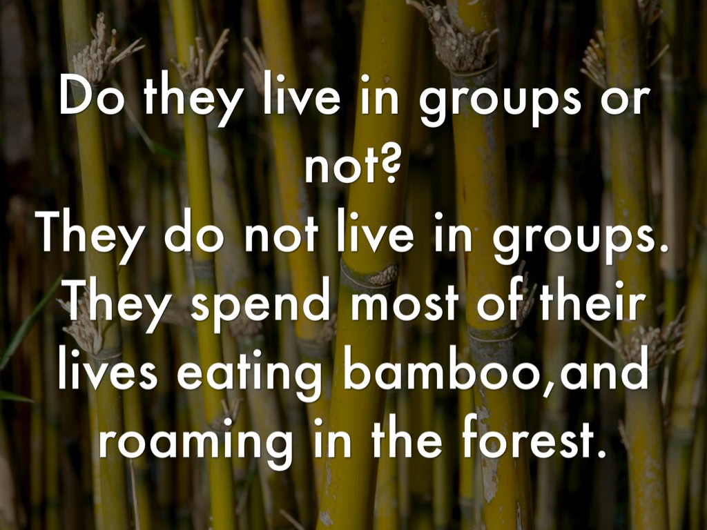 They do not live in groups. They spend most of their lives eating bamboo,and roaming in the forest.