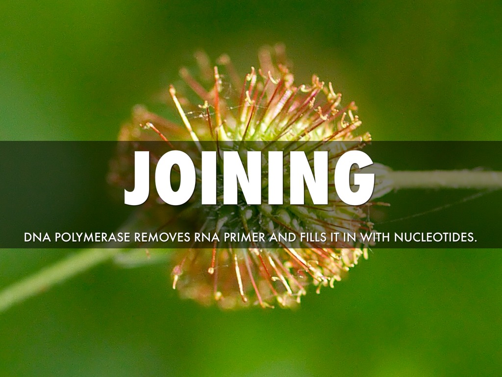 DNA POLYMERASE REMOVES RNA PRIMER AND FILLS IT IN WITH NUCLEOTIDES.