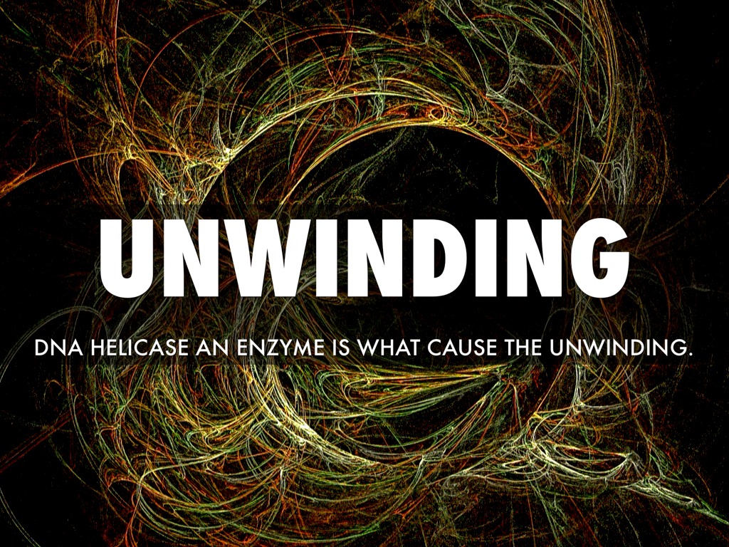 DNA HELICASE AN ENZYME IS WHAT CAUSE THE UNWINDING.