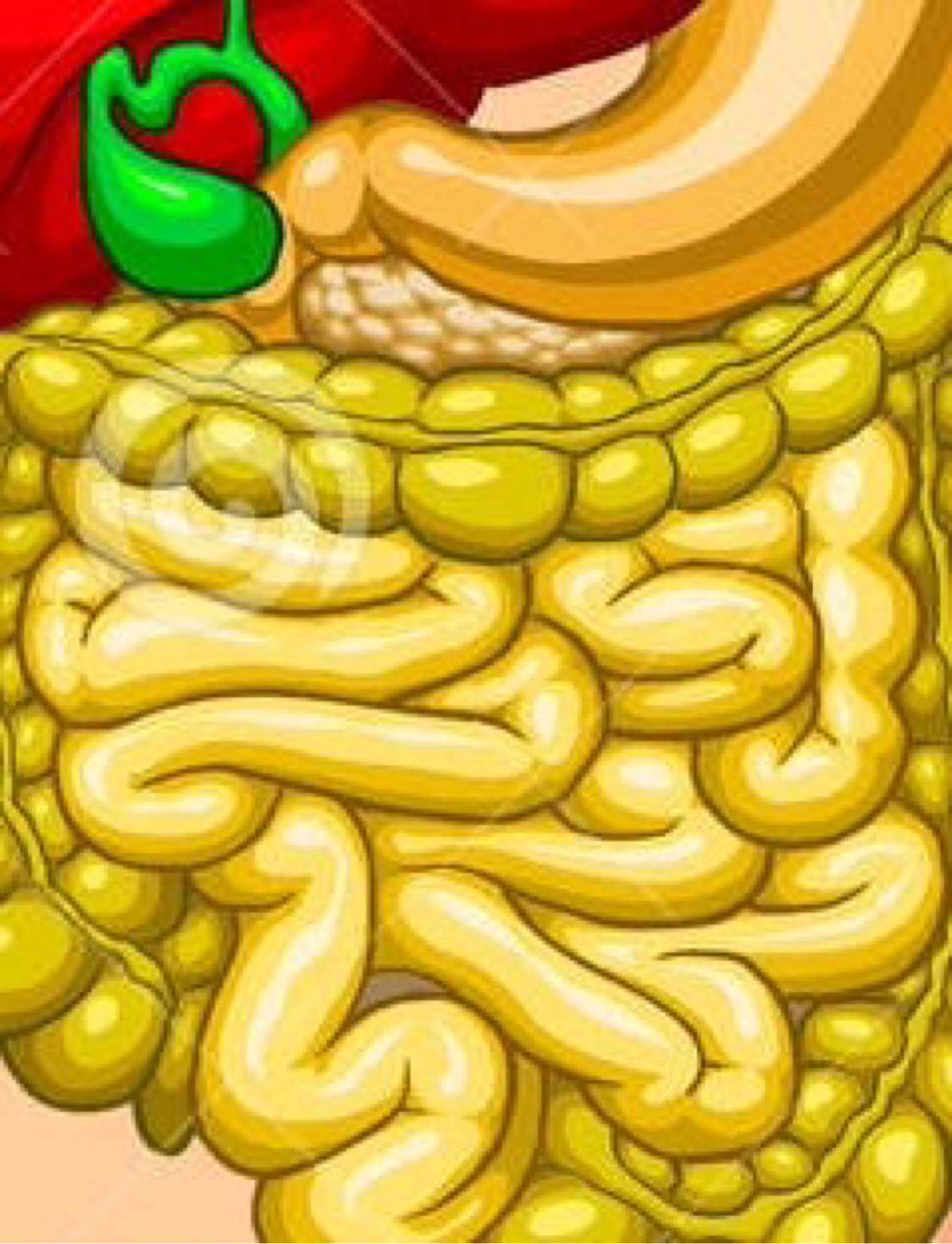 Now this is where most of the digestion happens . The small intestine .full of enzymes to break down the food.