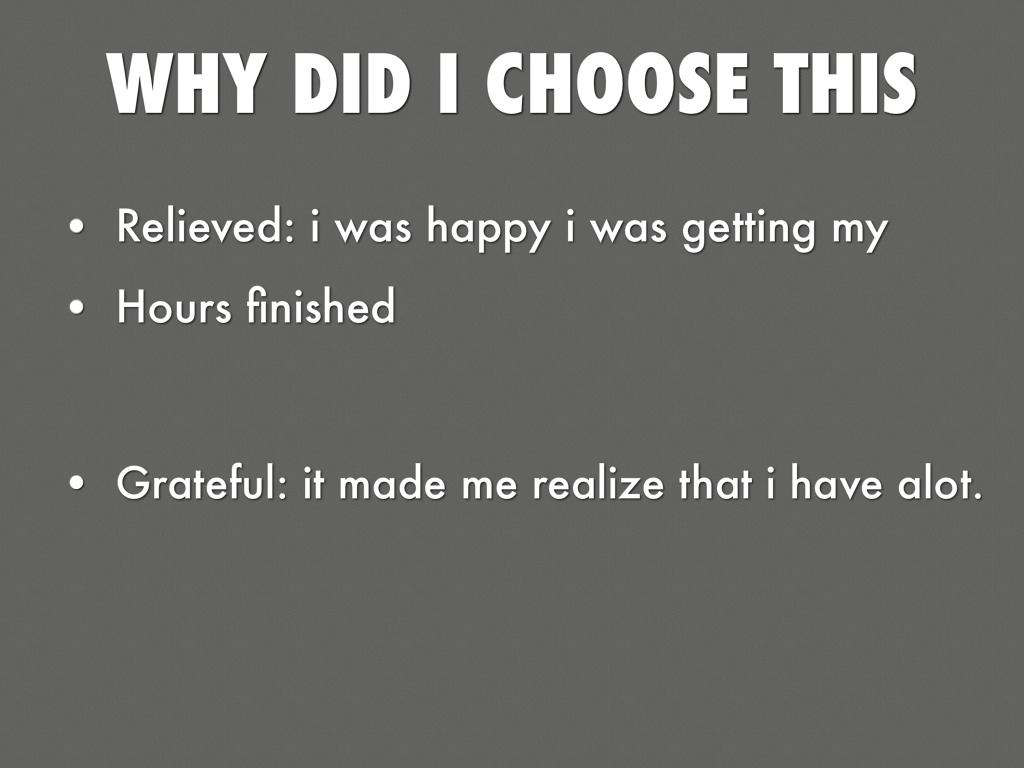 WHY DID I CHOOSE THIS