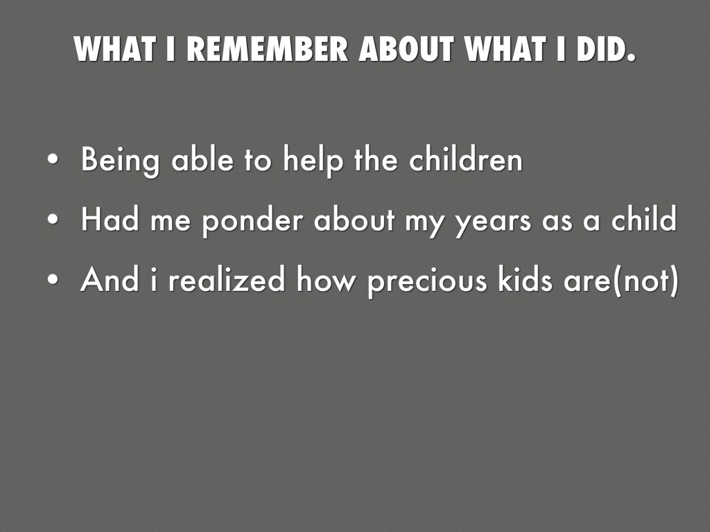 WHAT I REMEMBER ABOUT WHAT I DID.