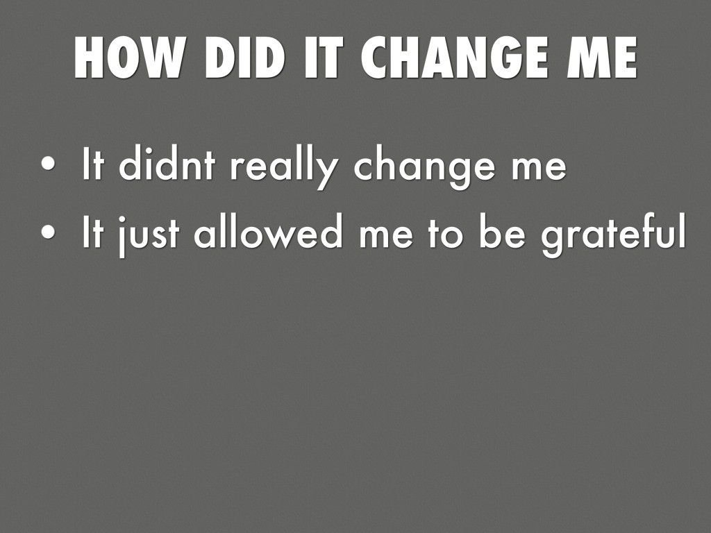 HOW DID IT CHANGE ME