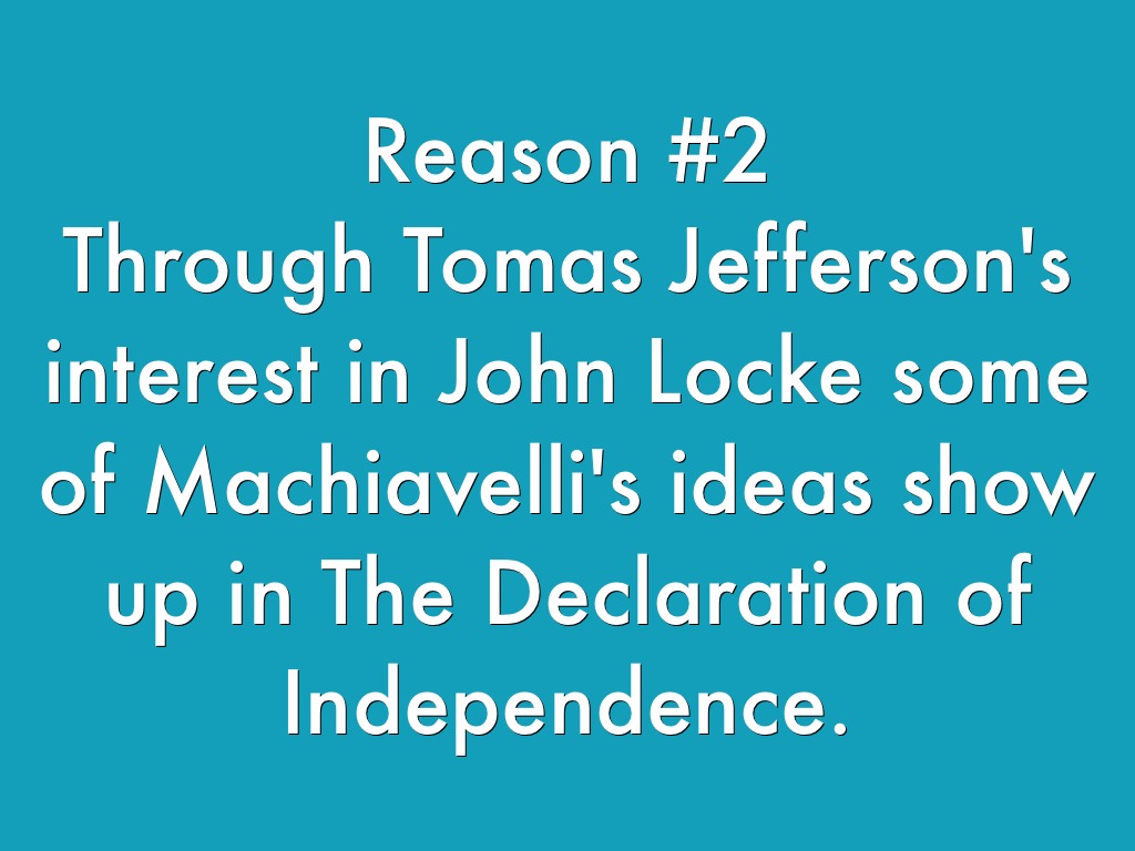 Through Tomas Jefferson's interest in John Locke some of Machiavelli's ideas show up in The Declaration of Independence.