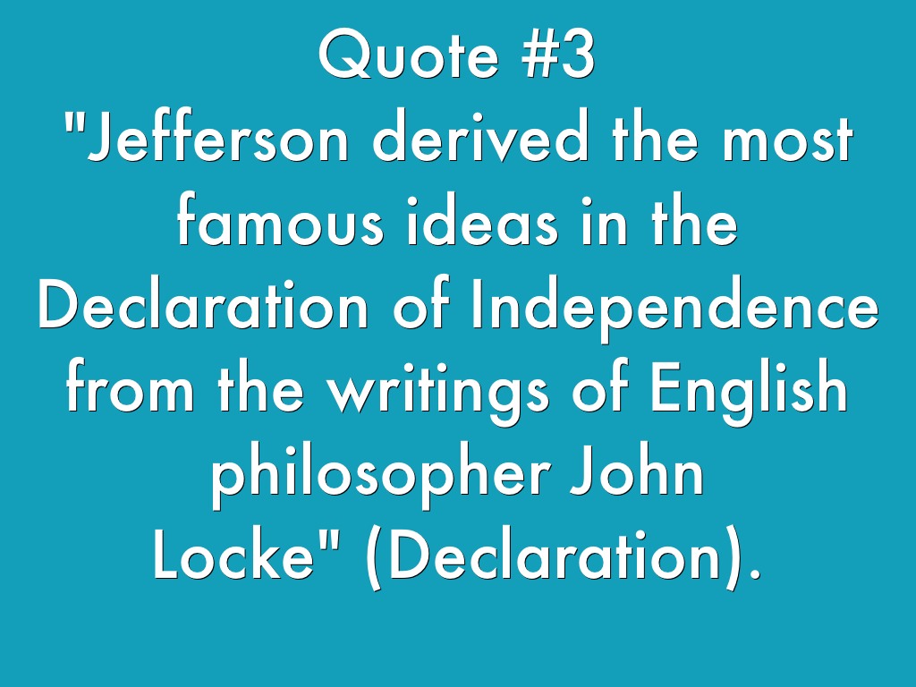 Quote #3 "Jefferson derived the most famous ideas in the Declaration of Independence from the writings of English philosopher John Locke" (Declaration).