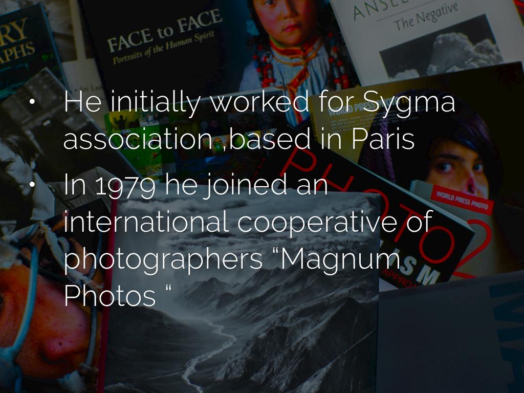 • In 1979 he joined an international cooperative of photographers “Magnum Photos “
