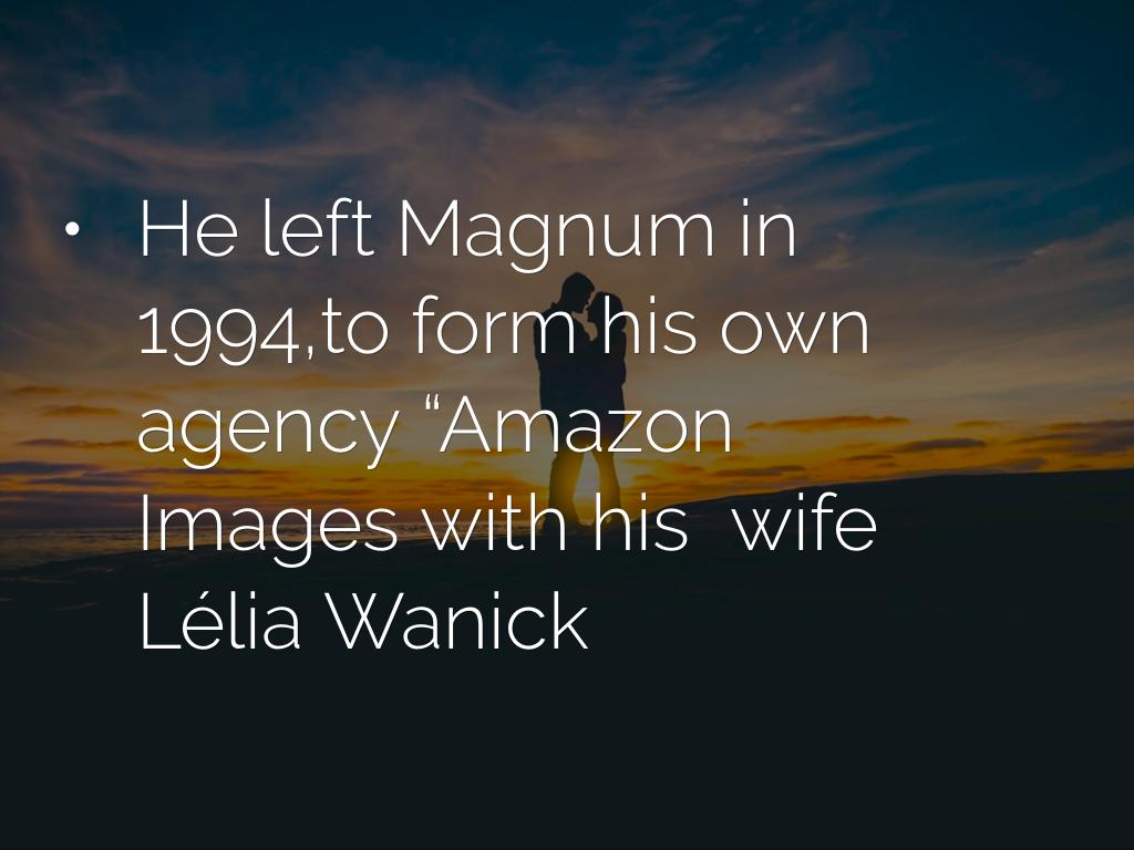 • He left Magnum in 1994,to form his own agency “Amazon Images with his wife Lélia Wanick