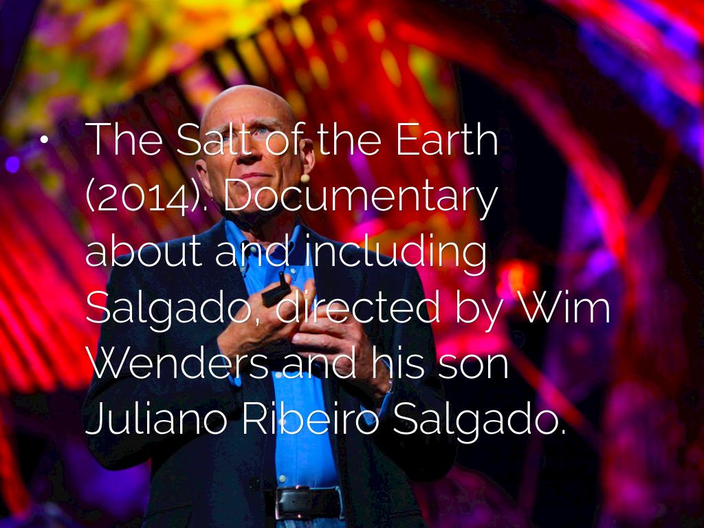 • The Salt of the Earth (2014). Documentary about and including Salgado, directed by Wim Wenders and his son Juliano Ribeiro Salgado.