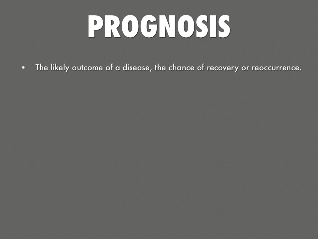 The likely outcome of a disease, the chance of recovery or reoccurrence.