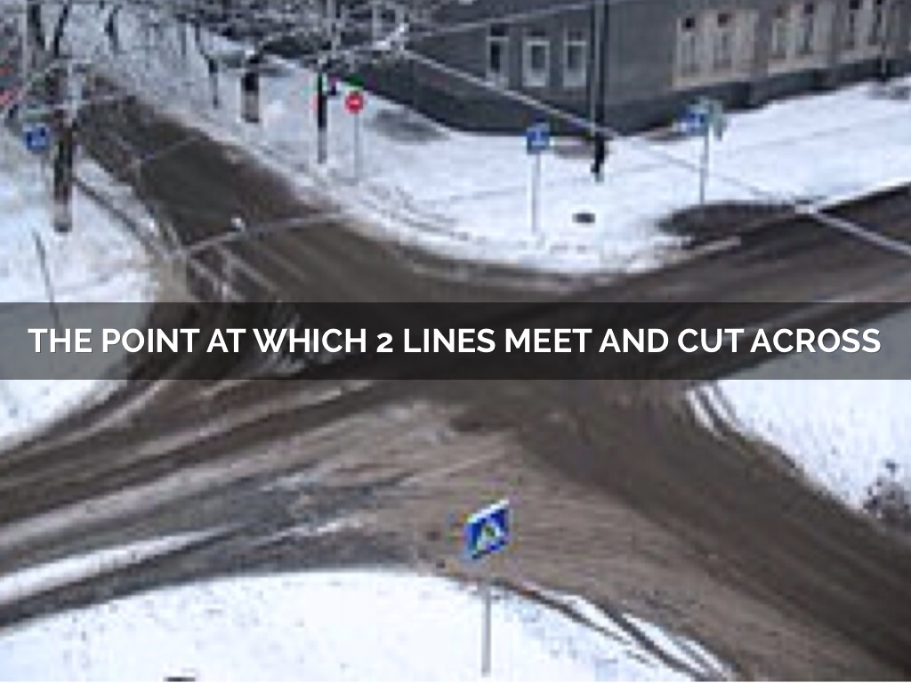 THE POINT AT WHICH 2 LINES MEET AND CUT ACROSS