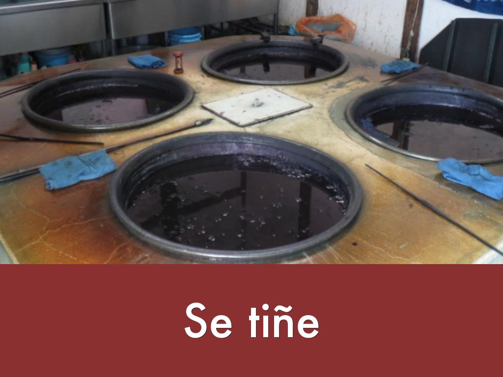 Ya que la seda solo es de un color, se sumergen en tinte.