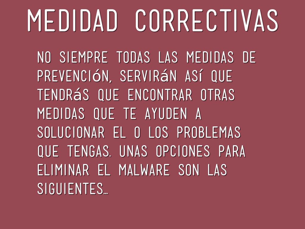 no siempre todas las medidas de prevención, servirán así que tendrás que encontrar otras medidas que te ayuden a solucionar el o los problemas que tengas. Unas opciones para eliminar el malware son las siguientes...