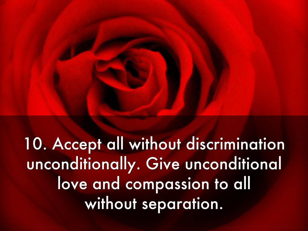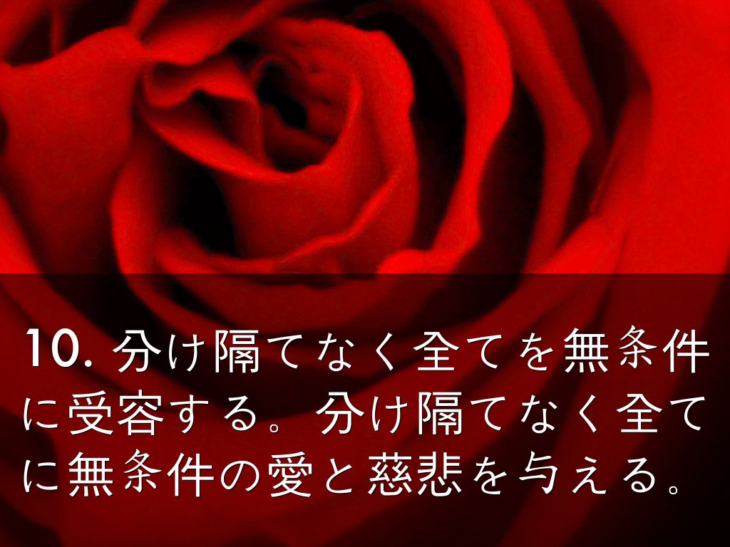 10. 分け隔てなく全てを無条件に受容する。分け隔てなく全てに無条件の愛と慈悲を与える。