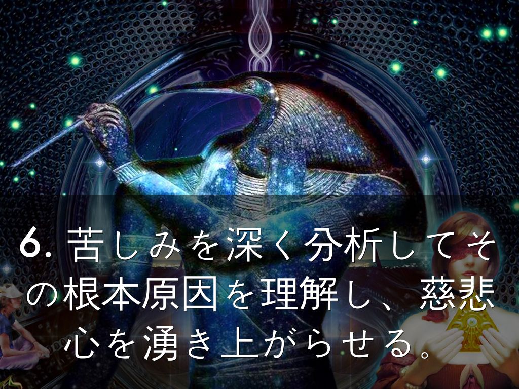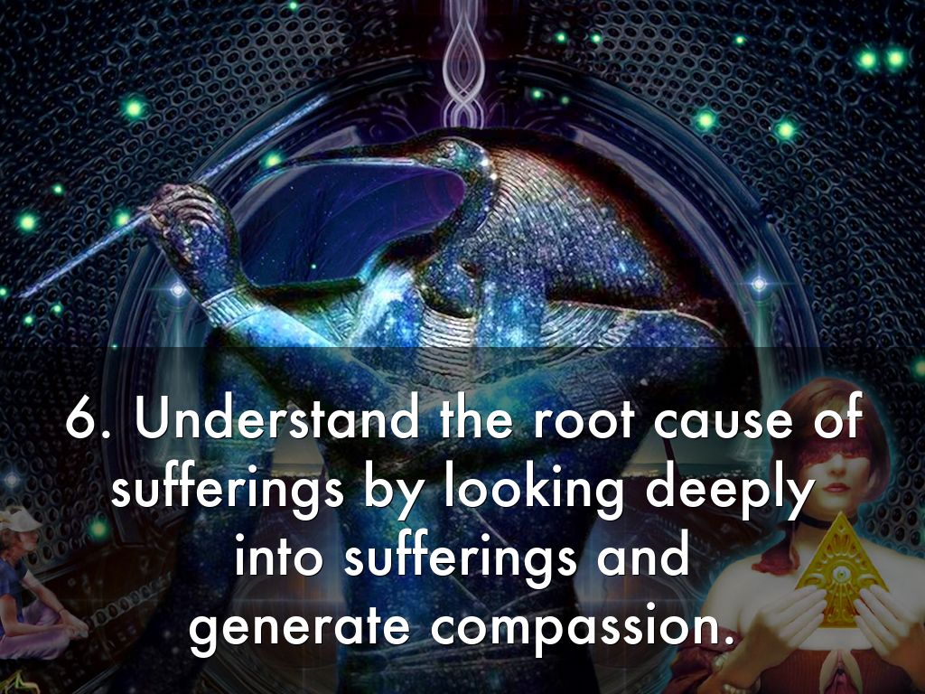 6. 苦しみを深く分析してその根本原因を理解し、慈悲心を湧き上がらせる。