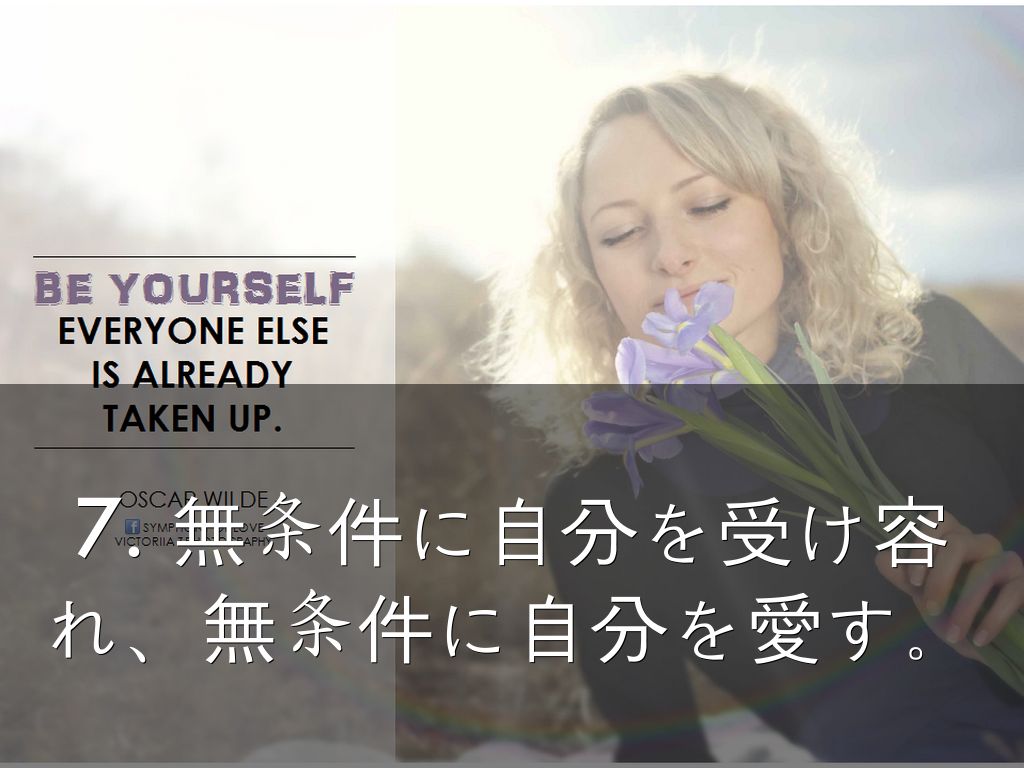 7. 無条件に自分を受け容れ、無条件に自分を愛す。