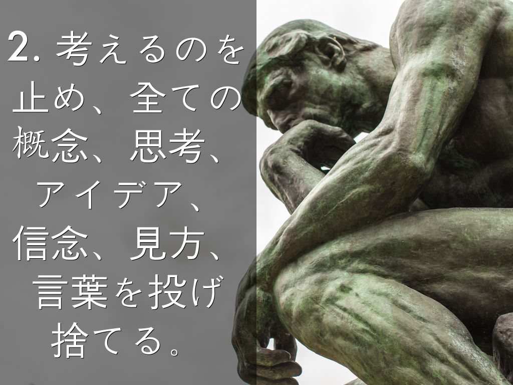 2. 考えるのを止め、全ての概念、思考、アイデア、